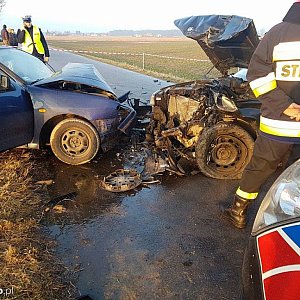 W zdarzeniu udział brały dwa pojazdy,które zderzyły się czołowo. Zdarzenie wyglądało bardzo groźnie.